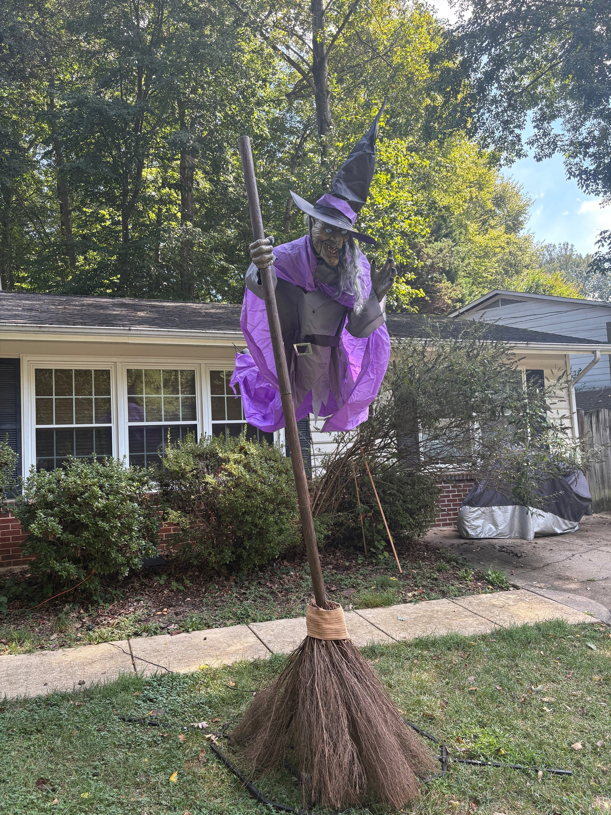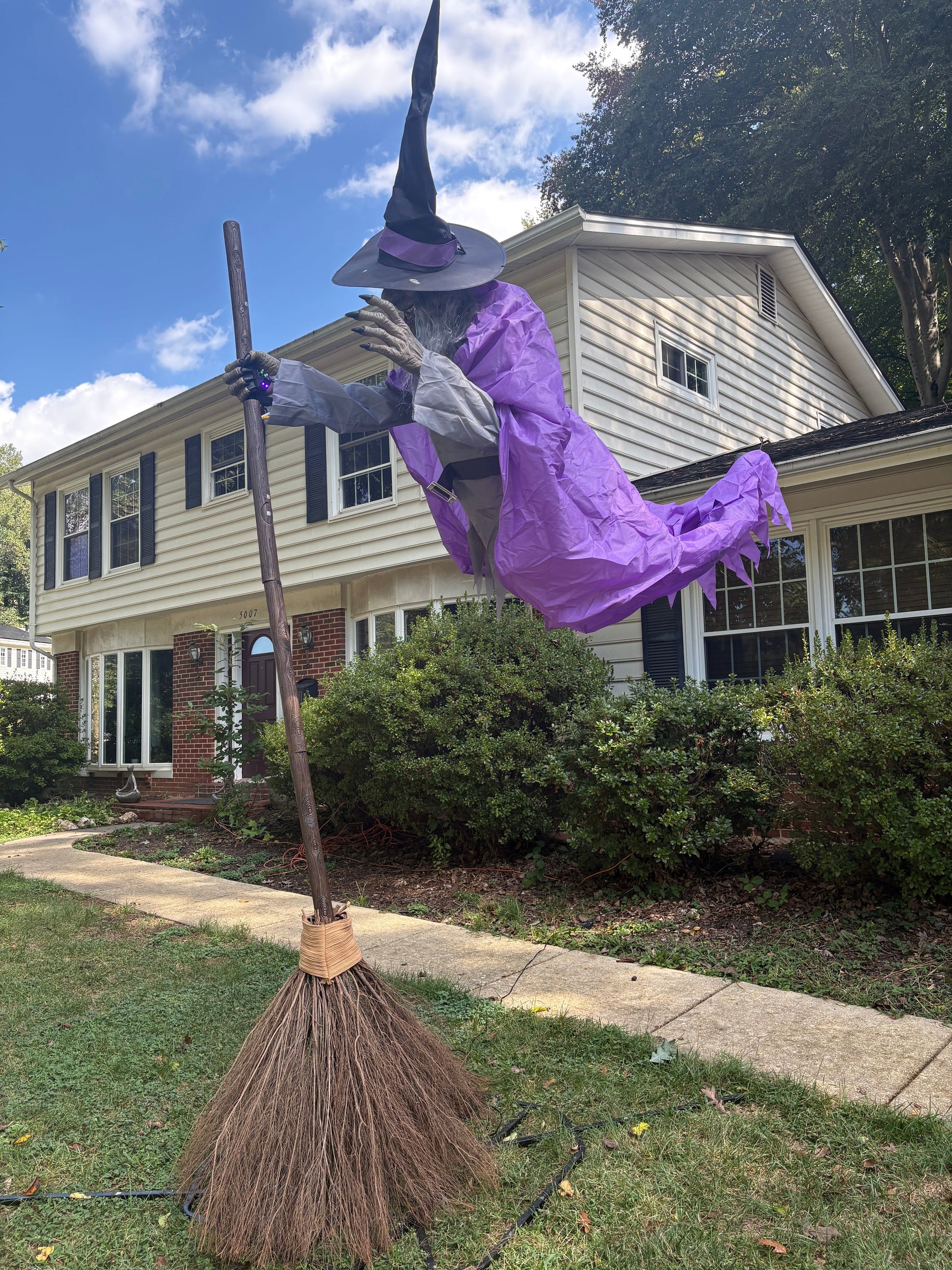 Our best-selling Flying Witch Décor is officially back in stock but only in limited quantities. This Halloween, amaze your neighbors and guests with a towering 12-foot witch featuring a moving head and live voice.